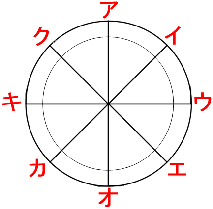 5.下の図のア~クはそれぞれどの方位を示しているか。8方位で答えなさい。